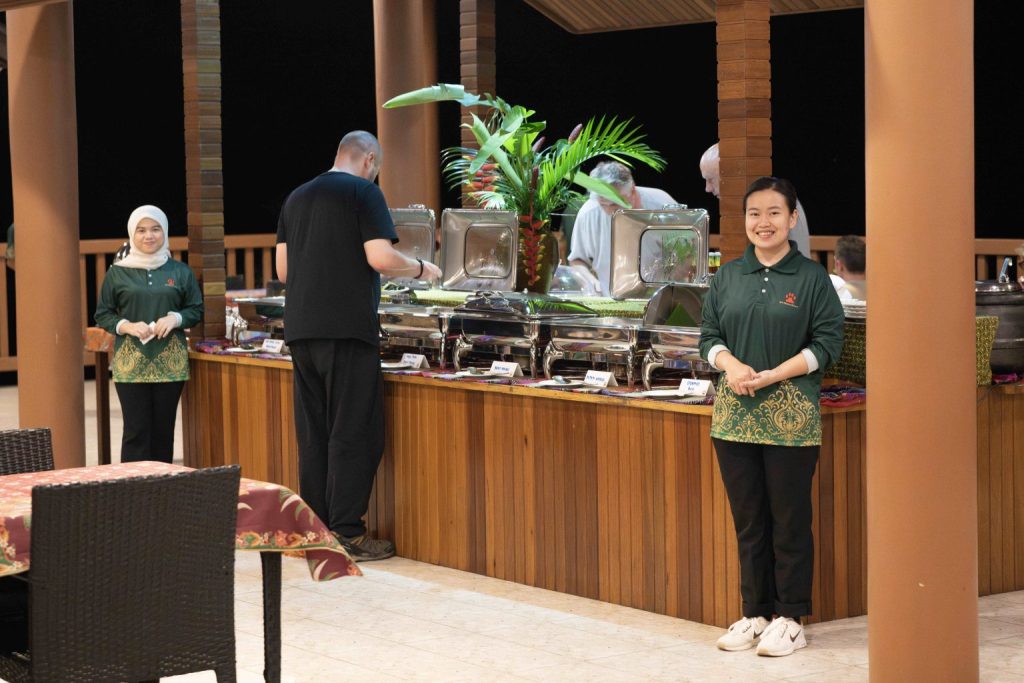 Today we have a free day to spend how we wish in the area where the sea meets the rainforest. The resort is located in acres of untouched natural beauty from a wide sandy beach to the tropocal rainforest. While there, we can relax in resort, on the beach, or head out on one of the many walks, in addition to bird watching or water sports. We could even book onto an experience in Mari Mari Cultural Village.